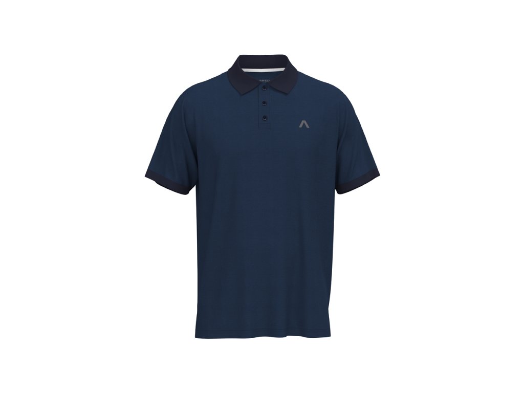 Melírovaný modrý design dodává tričku moderní a dynamický vzhled, zatímco kontrastní límec a manžety rukávů vytvářejí stylový sportovní akcent.