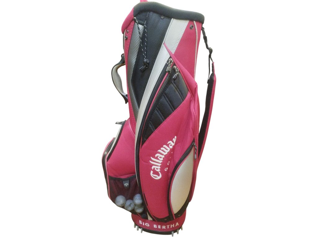 Použitý golfový cartbag Callaway Big Bertha. Organizér golfových holí má 6 přihrádek a 8 kapes. Bag je primárně určen k použití na golfovém vozíku, lze ho však nosit na rameni díky polstrovanému popruhu.