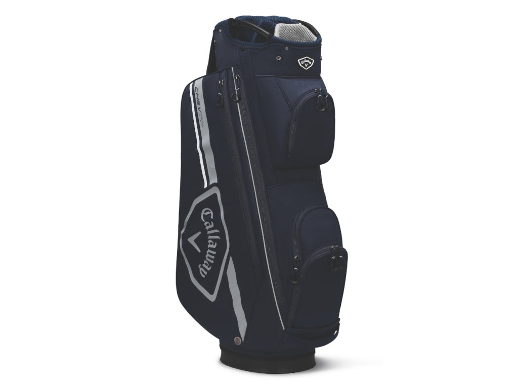 Callaway golfový cart bag Chev 14+ je navržen tak, aby splnil všechny požadavky, které hráč potřebuje. Nabízí promyšlený a prostorný systém kapes, zabudované postranní madla a 14-ti cestný organizér golfových holí se stabilní základnou připravenou též pro elektrické vozíky. Elegantní a promyšlený cart bag bez nožiček, určený pro vozík.