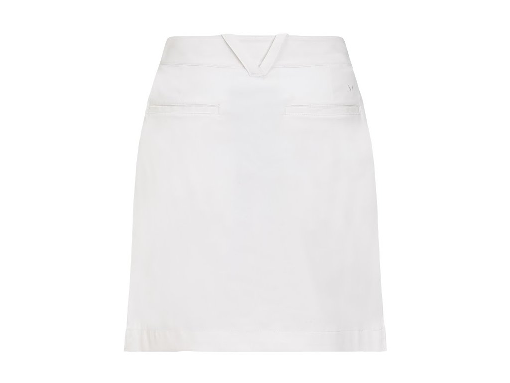 Dámská golfová sukně Opti Stretch má v pase pružnou síťku, aby Vám poskytla co možná největší pohodlí a pohyblivost. Na zadní straně jsou poutka na pásek tvarovaná do loga Callaway Chev, další Callaway logo je nad zadní pravou kapsou. Délka sukně je 46 cm.