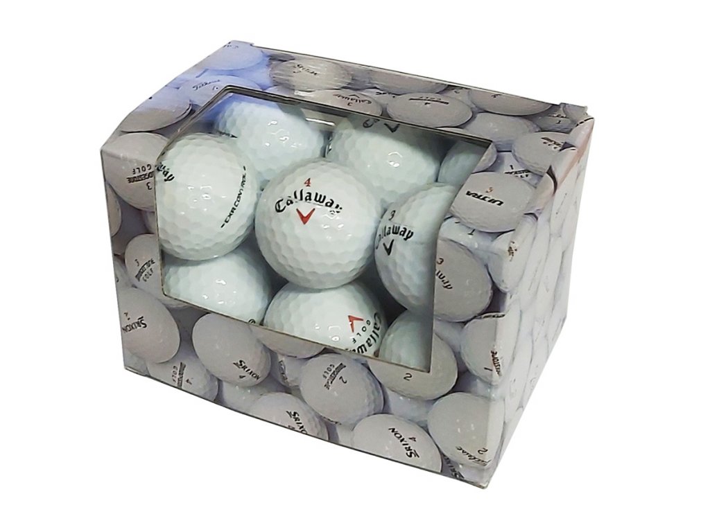 Hrané golfové míčky, které nevykazují žádné velké opotřebení. Rozdíl mezi těmito hranými golfovými míčky a novými golfovými míčky je minimální. Vykazují vysoký lesk a pouhým okem málo viditelné odřeniny! Tyto hrané golfové míčky jsou skoro jako nové! Mohou na sobě mít firemní potisk či individuální označení.