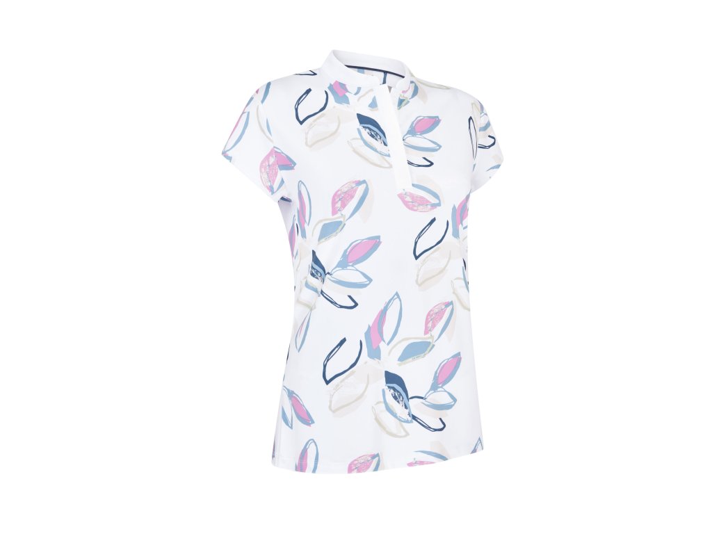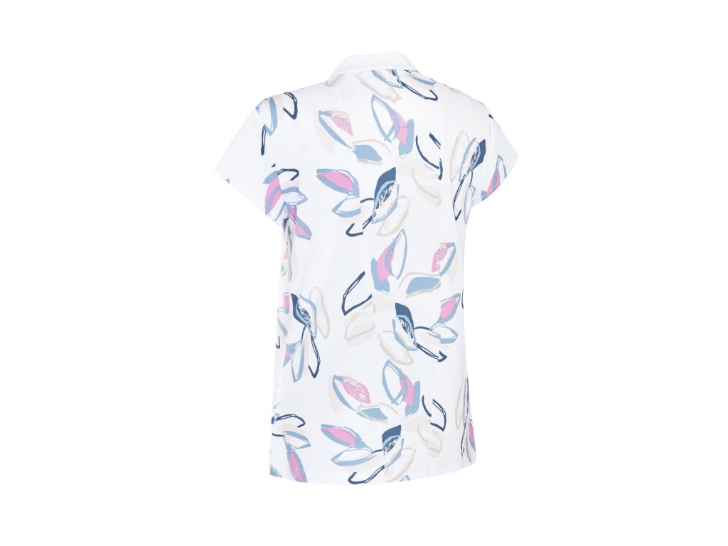 Dámské golfové tričko Callaway Linear Petals s technologií Swing Tech™ pro plný rozsah pohybu. Žerzejový úplet dodává jemný pocit na pokožce, zatímco technologie odvádějící vlhkost pomáhá odvádět pot od těla pro rychlejší schnutí.