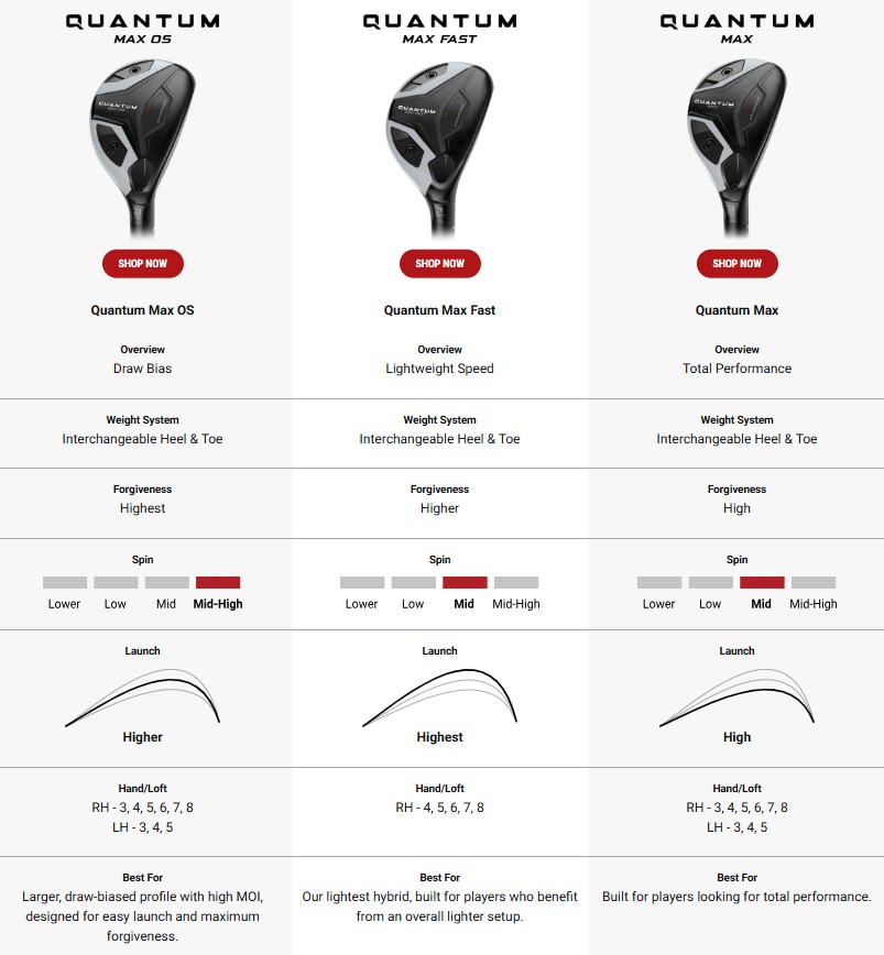 Tento model je nejlehčí verzí v řadě Quantum Max, díky čemuž je ideální pro golfisty, kteří chtějí snadný launch, vysoké odpuštění a konzistentní výkon z různých lie situací.
