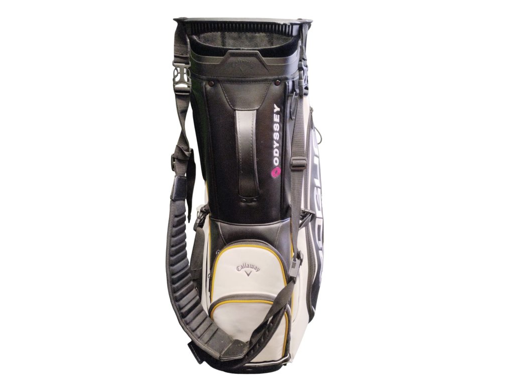 Použitý golfový standbag Callaway Rogue. Organizér golfových holí má 5 přihrádek na golfové hole, 6 kapes na příslušenství. Prostorný systém kapes zajišťuje pohodlnou organizaci Vašeho golfového vybavení. U bagu je cover proti dešti.