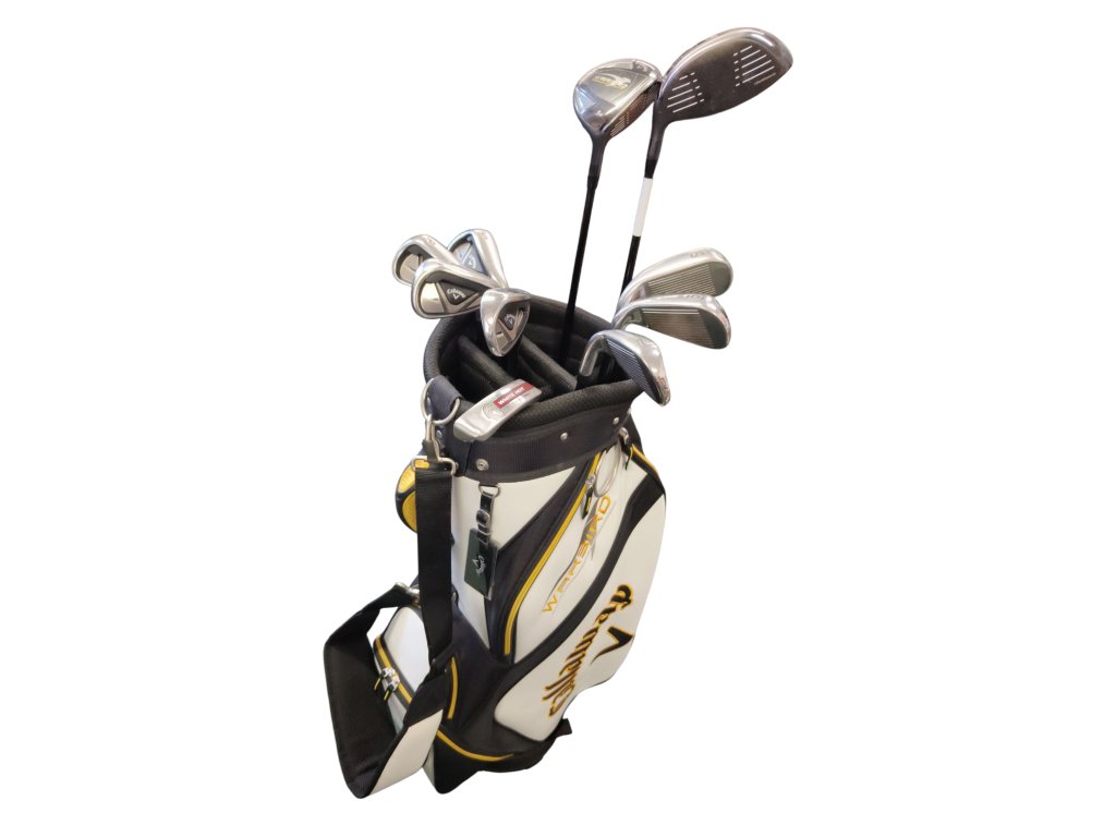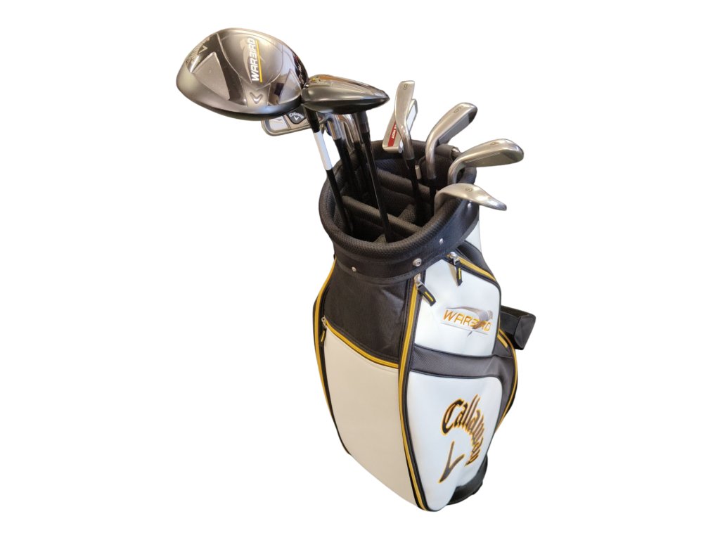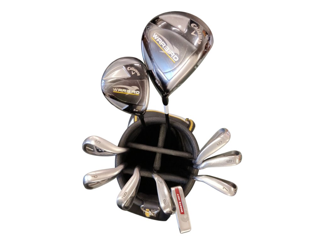 Pánský golfový set Callaway Warbird na grafitu v hraném stavu. Set obsahuje driver s loftem 10,5°, fairwayové dřevo č. 5, železa č. 5-9, PW, SW, putter typu blade a cartbag. Tyto hole jsou na grafitových shaftech s regular flex. Set je určen pravorukým hráčům.