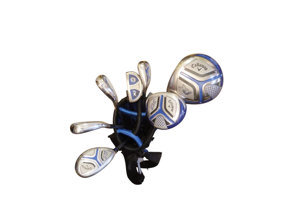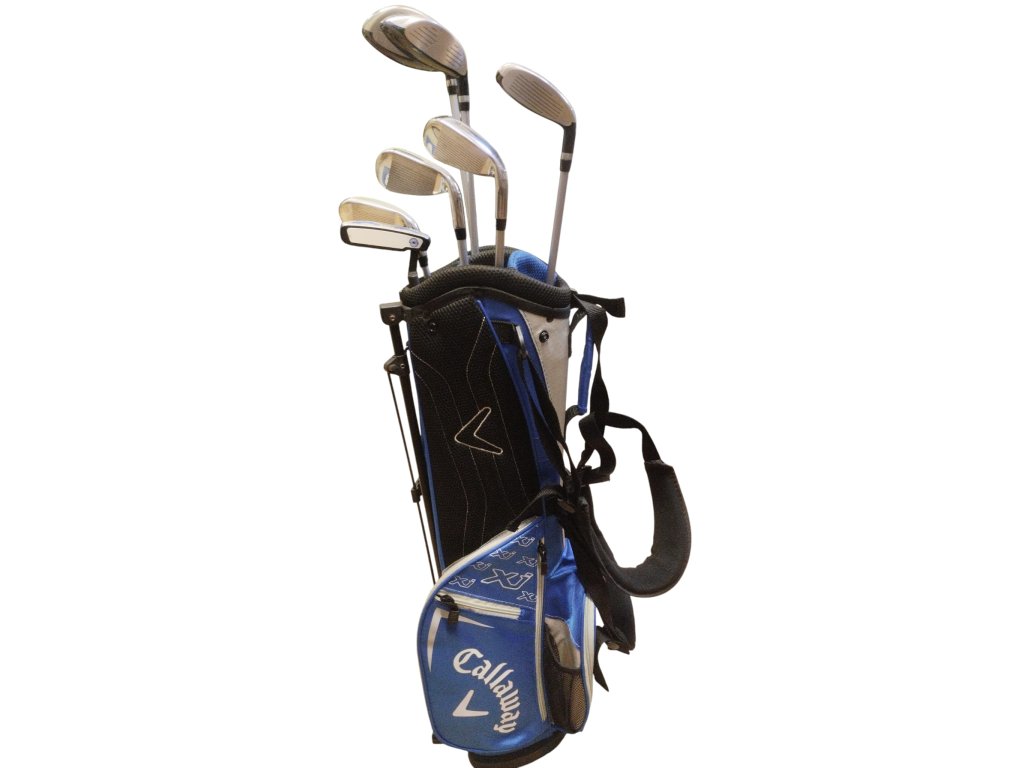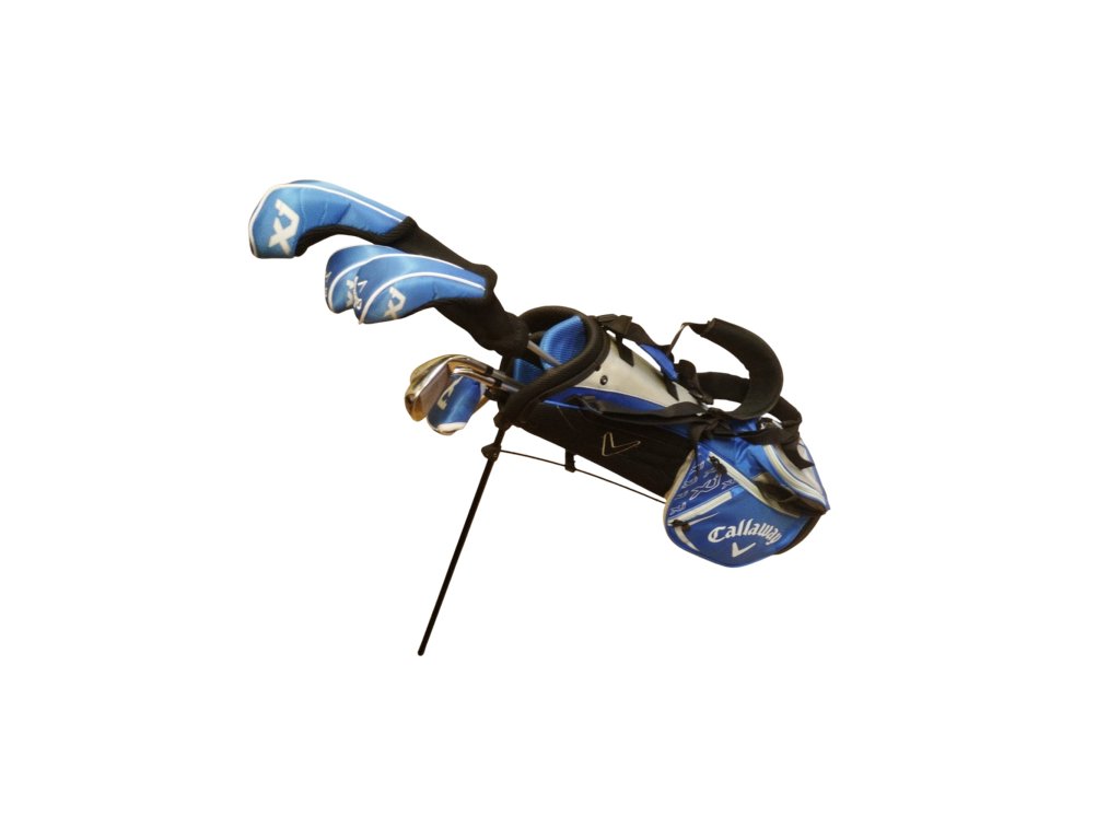 Dětský golfový set Callaway XJ-2 pro chlapce o výšce 120-135 cm v hraném stavu. Set obsahuje driver, fairwayové dřevo, hybrid, železa č.7, 9, SW, putter a standbag. Tyto hole jsou na grafitových shaftech s junior flex. Set je určen levorukým hráčům.