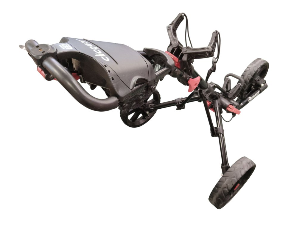 Použitý kvalitní golfový vozík od značky Clicgear, model 3.5, černý. K vozíku náleží držák na deštník.