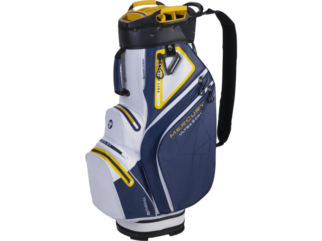 Cartbag Fastfold Mercury udržuje vaši výbavu organizovanou díky 15-cestnému organizéru, přihrádce na putter a 10 kapsám, včetně vodotěsné kapsy na cennosti a chladicí kapsy.