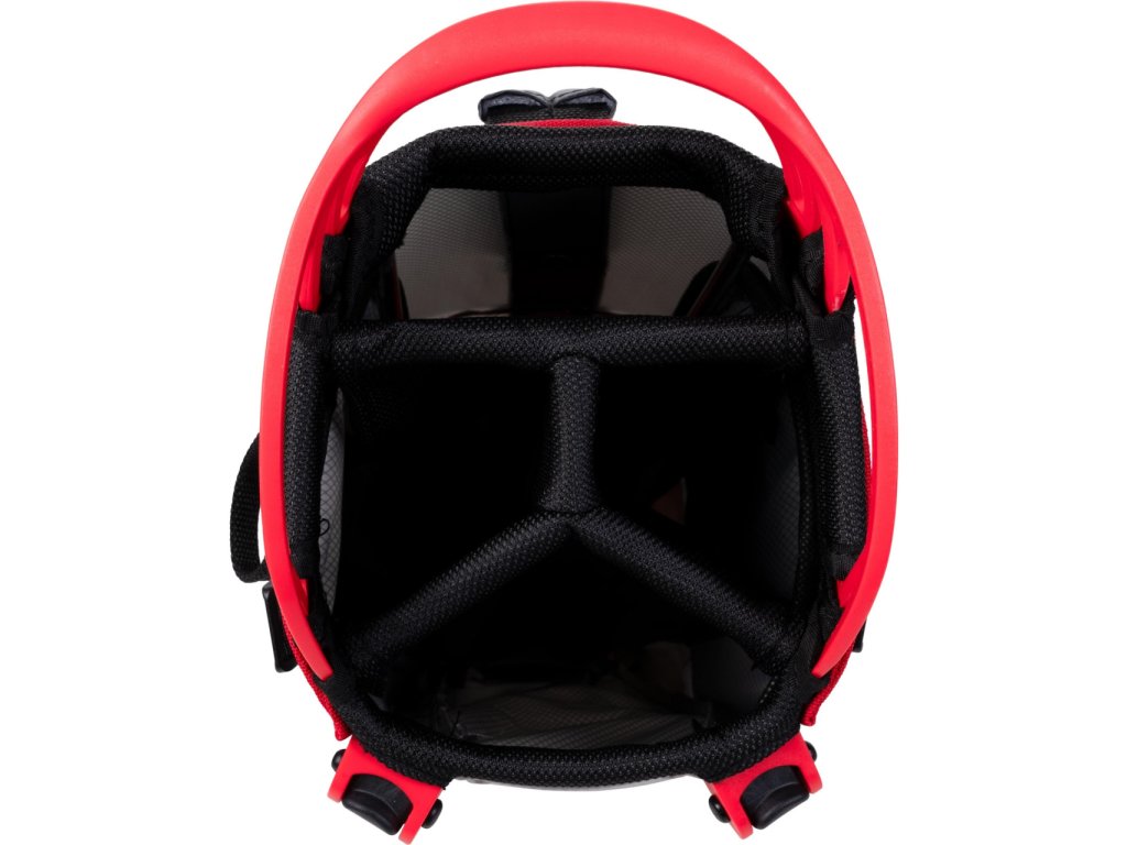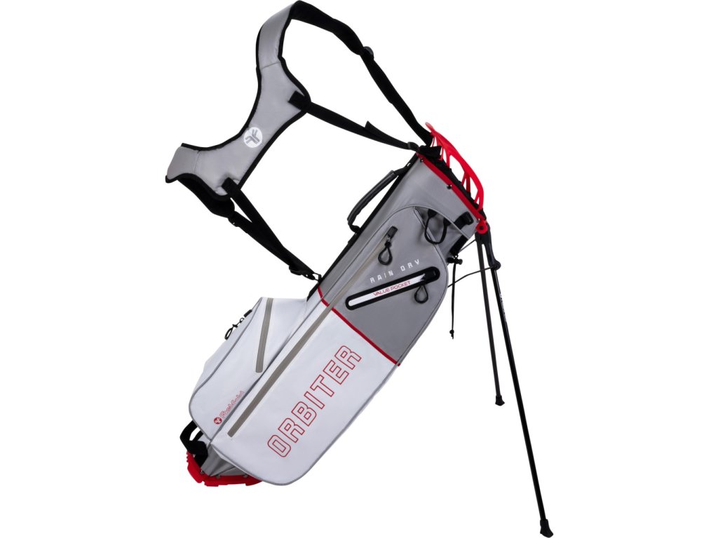 Fastfold Orbiter Raindry Standbag zůstává vodotěsný až 4 hodiny v dešti. Když neprší, můžete deštník snadno uložit do držáku na deštník. Kromě toho můžete na držák na ručník zavěsit také ručník a bag má ještě 5 prostorných kapes pro uložení nejrůznějších věcí. Vaše golfové hole můžete snadno oddělit pomocí 4 dílného horního organizéru. Zipy bagu jsou utěsněné, a tudíž nepromokavé. Nožičky stand bagu jsou ve spodní části rozšířené pro větší pevnost, když je bag na zemi. K přenášení golfového bagu můžete použít různá ucha a dvojitý popruh na přenášení. Při chůzi mají vaše záda dostatek čerstvého vzduchu díky zabudovanému vzduchovému kanálu. Hmotnost tohoto přenosného bagu je +/- 1,9 kg.
