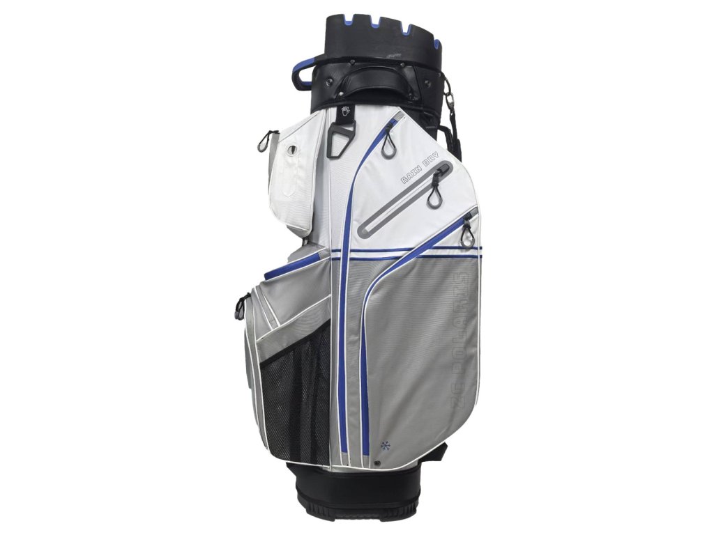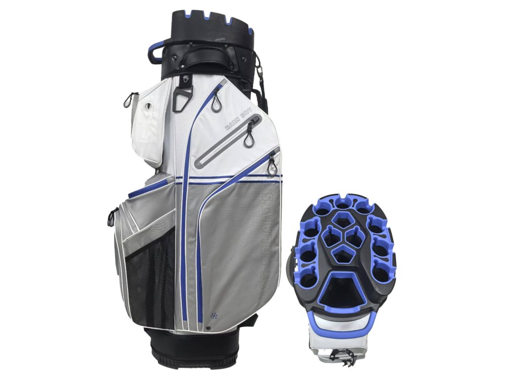 Udržujte si pořádek díky 14-cestnému organizéru, přihrádce na putter a 12 kapsám, včetně vodotěsné kapsy na cennosti a chladicí kapsy.