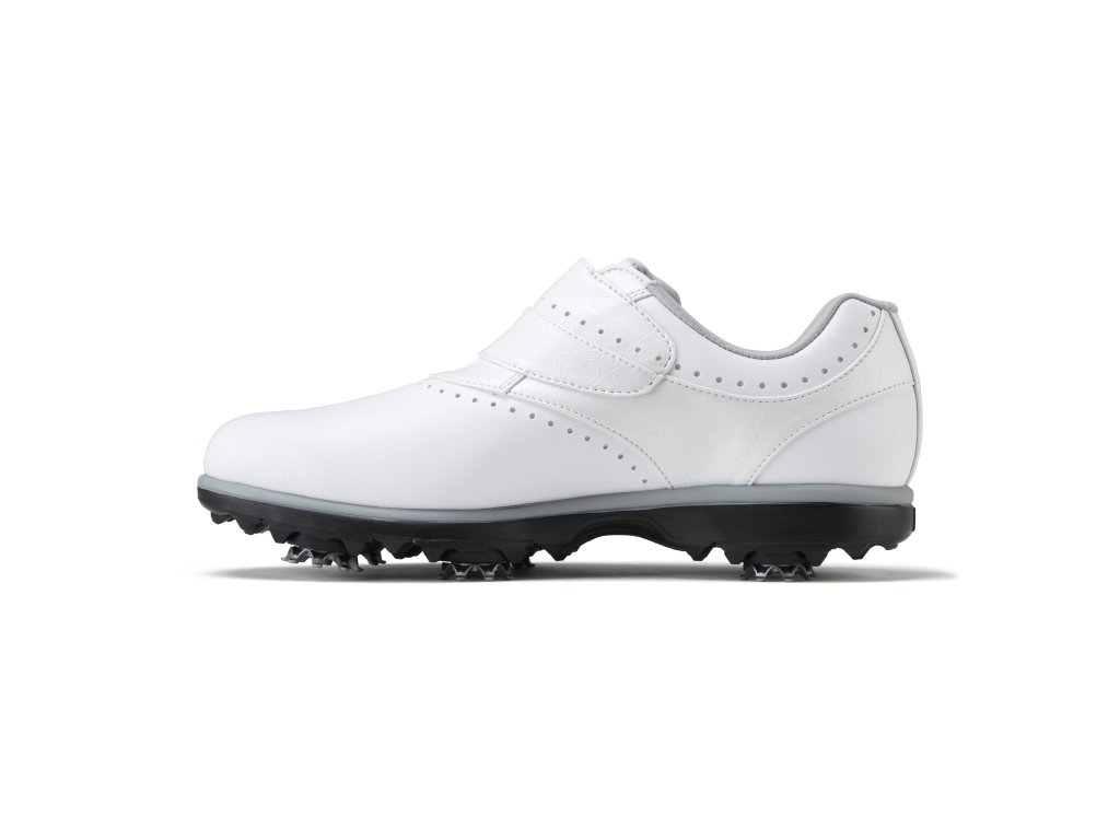 Zbrusu nová řada bot od firmy FootJoy, speciálně navržená výhradně pro ženy. Vrchní část bot je z pravé kůže, která nabízí vynikající vodotěsnost, prodyšnost a odolnost. Podrážka je vytvořena ze speciální gumové sloučeniny, která se nazývá DuraMax™. Díky tomu Vám boty zaručují skvělou stabilitu na trávníku.