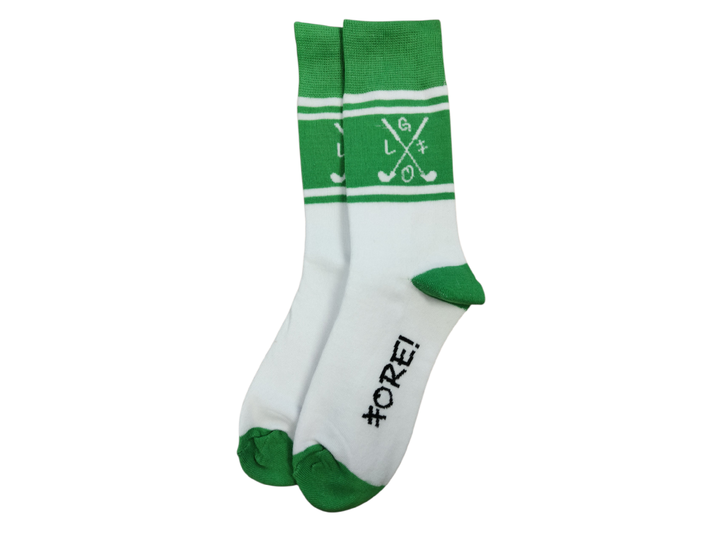 Zelené ponožky s golfovým motivem.