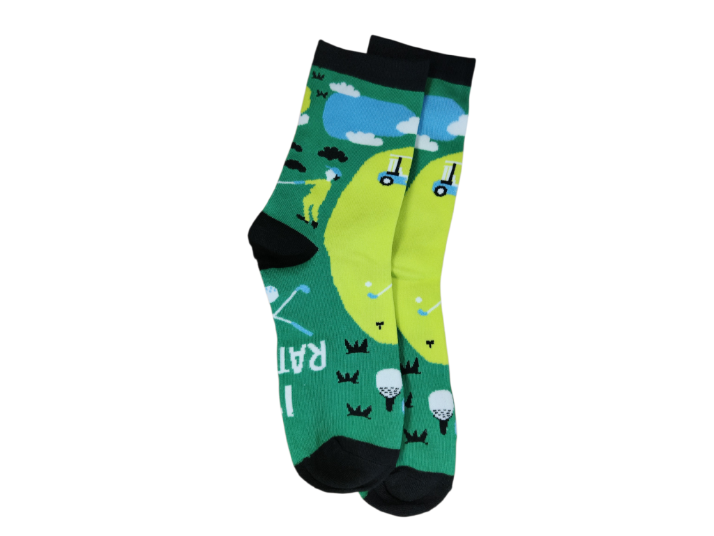 Zelené ponožky s golfovým motivem.