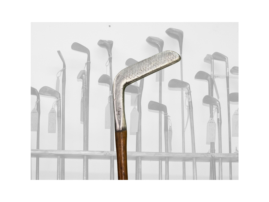 Přirozená patina a drobné stopy používání podtrhují autenticitu a historickou hodnotu tohoto exempláře. Jde o výrazný sběratelský kus, který osloví jak milovníky historie golfu, tak investičně orientované sběratele.