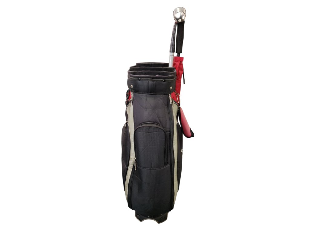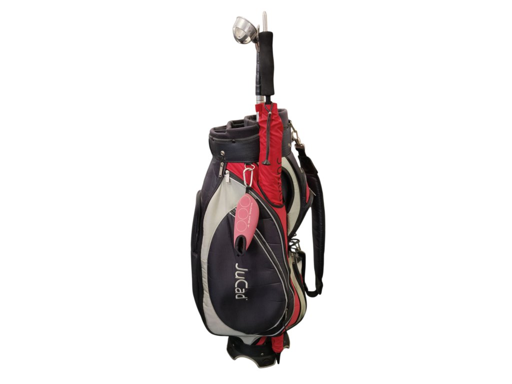 Použitý cart bag od značky JuCad. Organizér golfových holí má 14 přihrádek na golfové hole, 9 kapes na příslušenství, u jedné kapsy je nefunkční zip. K bagu náleží deštník a lovítko. Prostorný systém kapes zajišťuje pohodlnou organizaci Vašeho golfového vybavení.