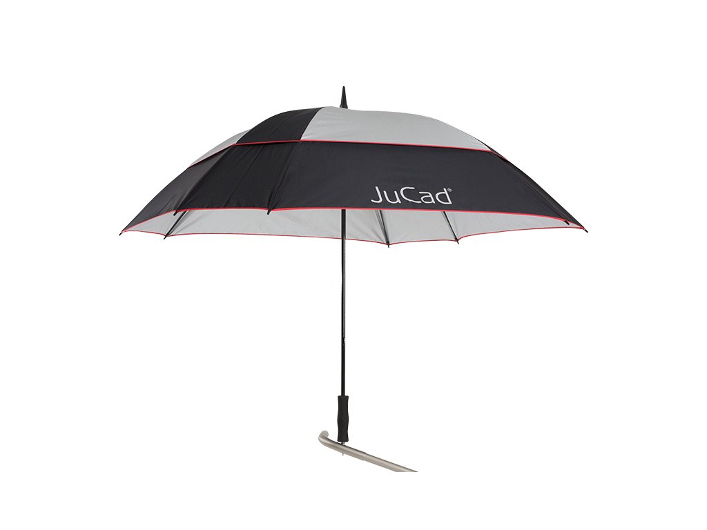 Deštník JuCad čtvercového tvaru s dvojitou stříškou nabízí extra ochranu proti větru při vašem golfu. S kolíkem pro montáž na vozík JuCad. průměr 145 cm.
