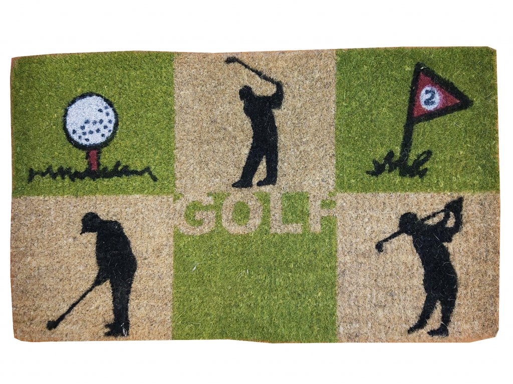 Pěkná a stylová rohož s golfovým motivem. Rohož je vyrobena z kokosových vláken, je tedy velmi odolná vůči oděru a špíně. Rohožka je vhodným doplňkem do domácnosti každého golfového nadšence.
