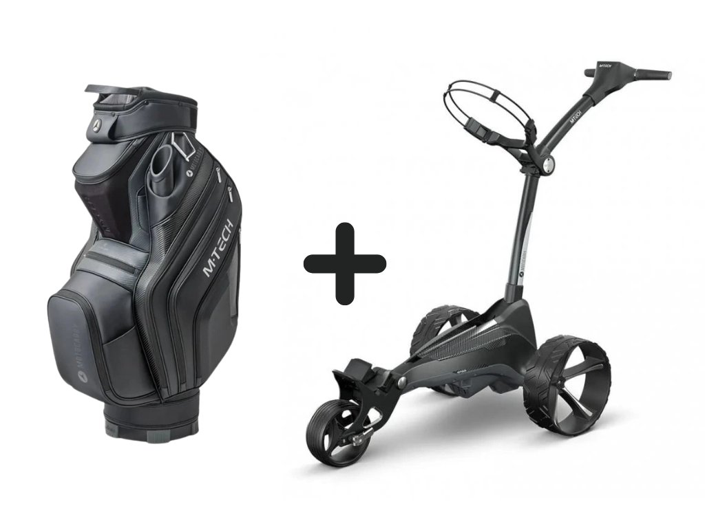 Výhodná kombinace moderního elektrického golfového vozíku MOTOCADDY M-Tech a golfového cart bagu MOTOCADDY M-Tech.