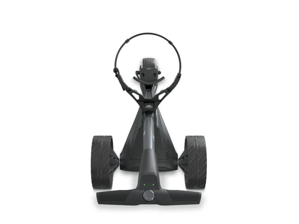 O pohon se stará tichý a úsporný elektromotor, který zajišťuje plynulý pohyb po hřišti s dostatečným výkonem i v kopcovitém terénu. Součástí výbavy je přehledné ovládání s nastavením rychlosti v několika úrovních, které umožňuje přizpůsobit tempo chůze přesně hráči.