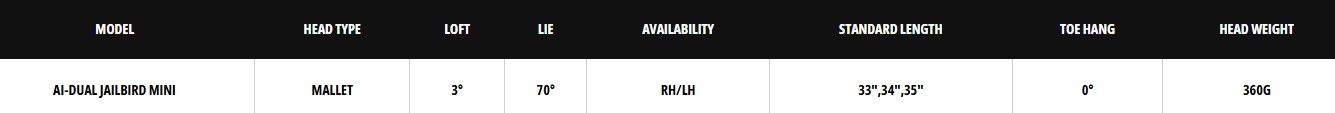 Odyssey Ai-DUAL Jailbird Mini DB je ideální volbou pro golfisty, kteří hledají ikonický design, maximální stabilitu a konzistentní kontrolu rychlosti, v prémiové kvalitě značky Odyssey.