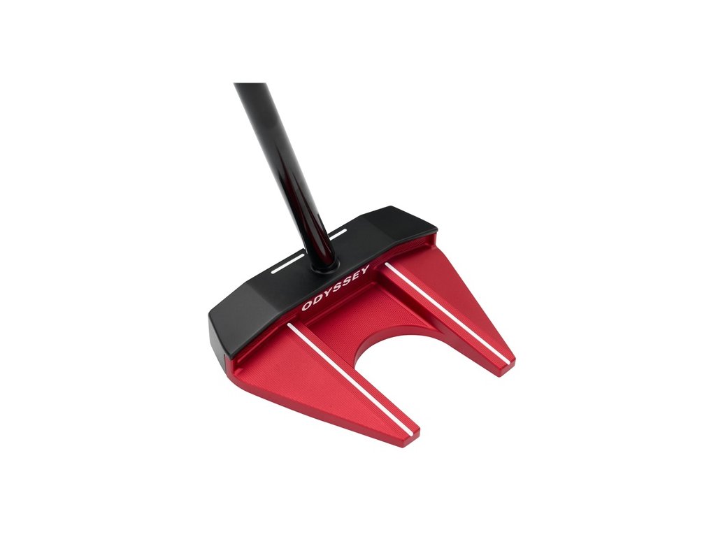 Odyssey Square 2 Square Tri-Hot #7 posouvá koncept zero-torque putterů na novou úroveň. Díky sofistikované vícemateriálové konstrukci se podařilo výrazně posunout těžiště dopředu a optimalizovat polohu shaftu tak, aby přirozeně podporoval square postavení úderové plochy během celého švihu – bez nutnosti výrazného naklánění shaftu.