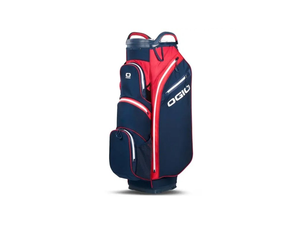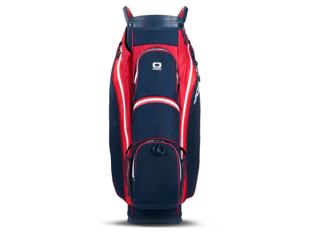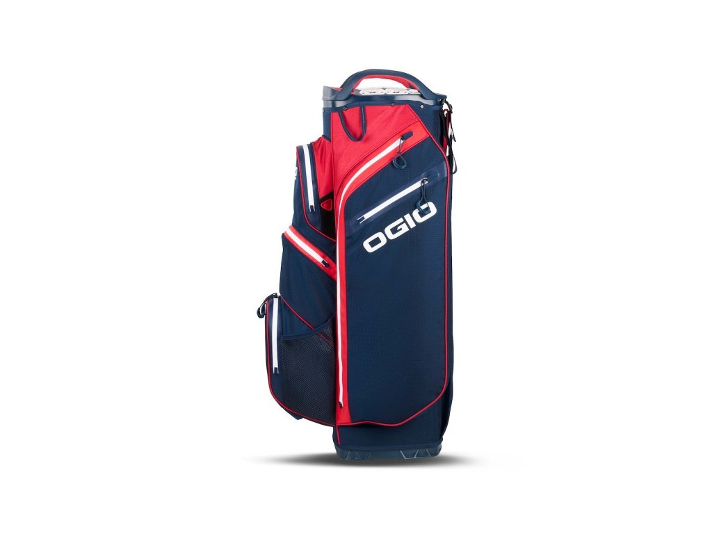 OGIO All Elements Silencer 25 cart bag červeno-modro-bílý + Dárková krabička týček