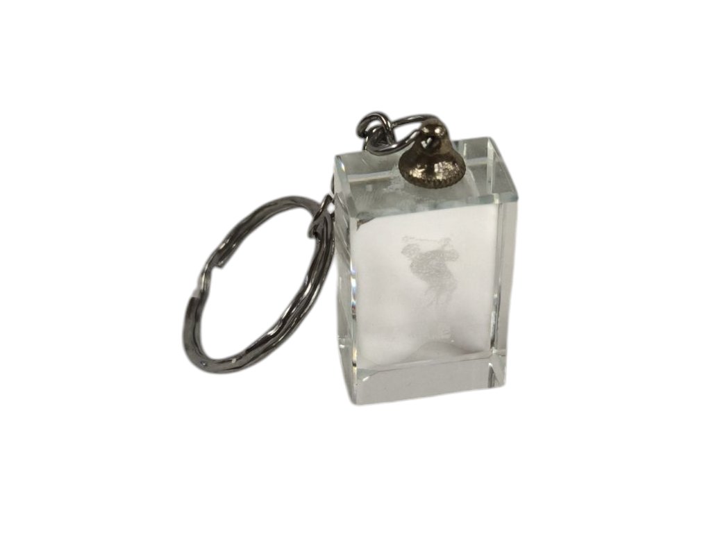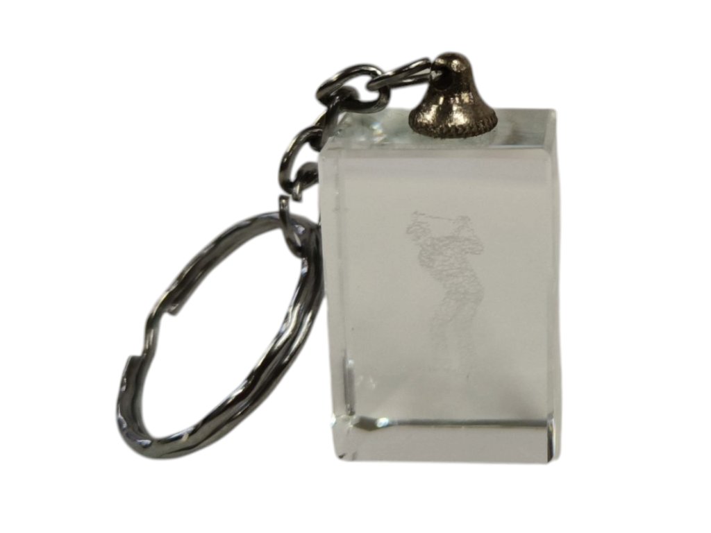 Přívěšek na klíče s krystalem s motivem golfisty.