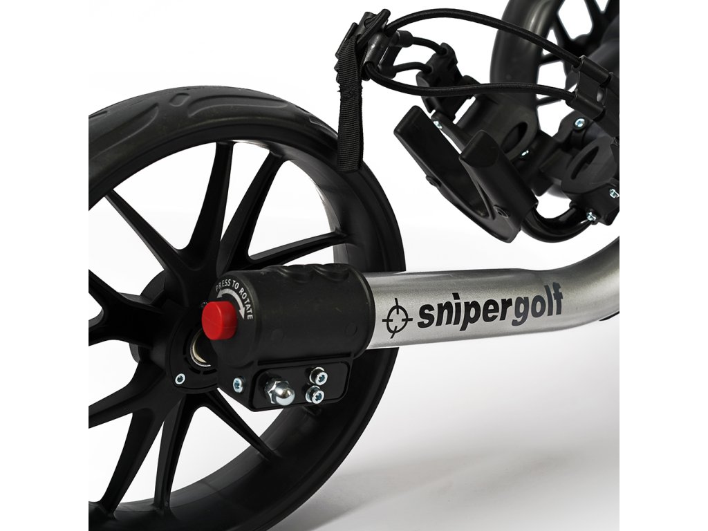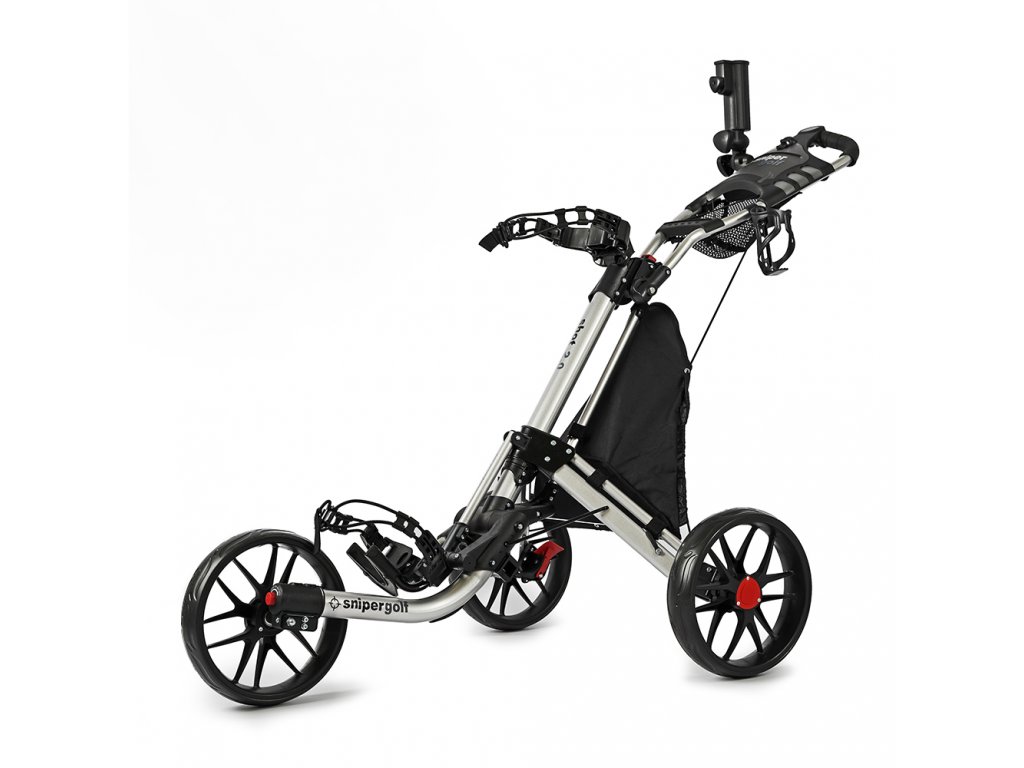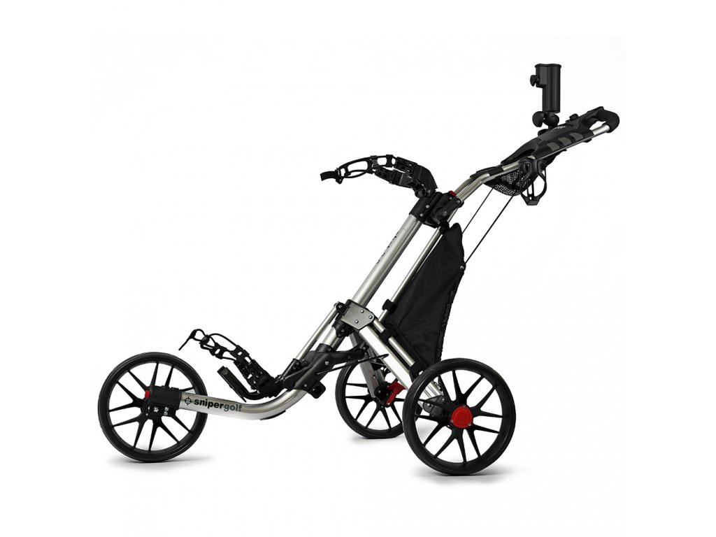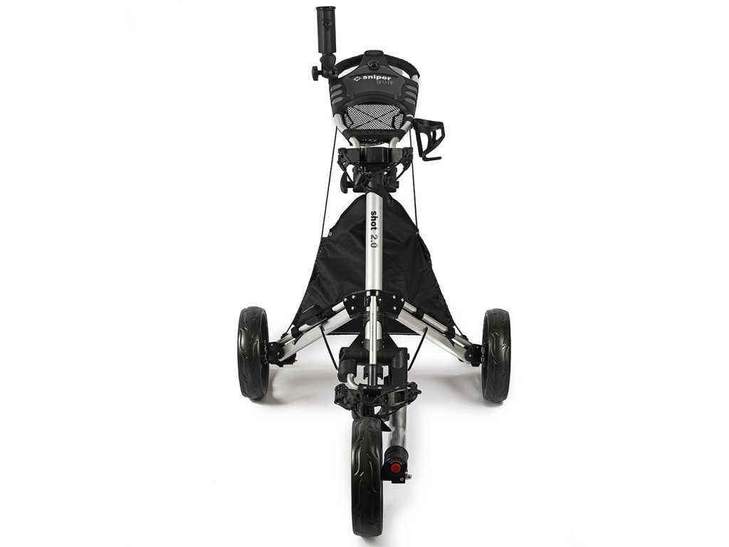 Tříkolový golfový vozík Sniper Shot 2.0 je vysoce kompaktní vozík na golf, který ohromí především úložnou taškou a skládacím mechanismem (složení vozíků pomocí jednoho tlačítka). Vozík dodáván včetně tašky, která má v sobě úložný prostor včetně chladící kapsy na pití nebo jídlo.