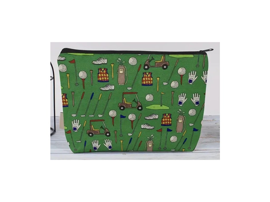 Taštička na drobnosti zelená s golfovým motivem