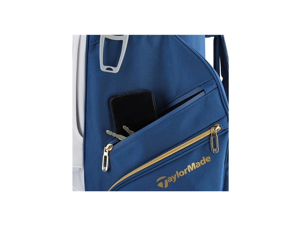 TaylorMade Kalea Gold Cart Bag je prémiový golfový dámský vozíkový bag, který spojuje elegantní styl s promyšlenou funkčností. Navržený tak, aby uspokojil potřeby hráček od začátečnic až po zkušené klubové golfistky, tento bag nabízí velkorysé uspořádání a spoustu praktických detailů pro pohodlné hraní na golfovém vozíku.