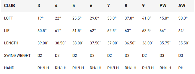 Technologie FLTD CG™ zajišťuje strategické umístění těžiště – u delších želez podporuje vyšší launch a snadnější vzlet míčku, zatímco u kratších želez generuje nižší trajektorii s vyšším spinem pro maximální kontrolu při útoku na vlajku. Přesně frézovaná líc dále přispívá ke konzistentnímu letu míčku a stabilním vzdálenostem.