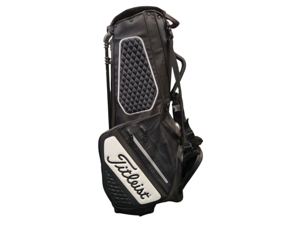Použitý golfový standbag od značky Titleist. Organizér golfových holí má 4 přihrádky na golfové hole, 6 kapes na příslušenství. U jedné kapsy je nefunkční zip a je ulomený jeden držák na popruh. Prostorný systém kapes zajišťuje pohodlnou organizaci Vašeho golfového vybavení.
