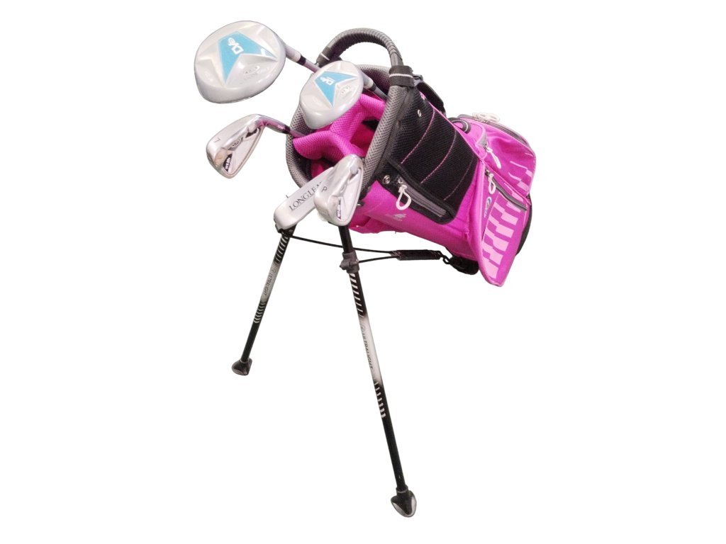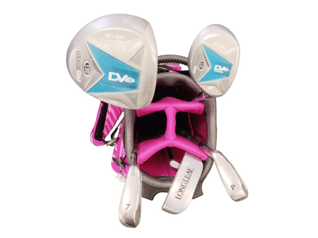 Kvalitní použitý golfový set US Kids pro dětské golfisty o výšce 122 až 130 cm. Set obsahuje driver s loftem 19°, hybrid s loftem 29°, golfové železo č. 7, pitching wedge, putter a standbag. Hole mají grafitové shafty s junior flex. Set je určen pravorukým golfovým hráčkám.