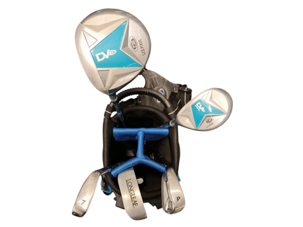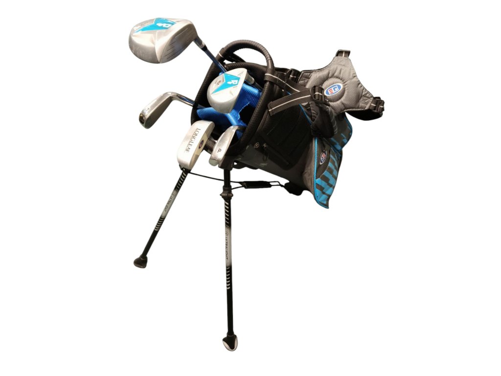 Kvalitní použitý golfový set US Kids pro dětské golfisty o výšce 122 až 130 cm. Set obsahuje driver s loftem 19°, hybrid s loftem 29°, golfové železo č. 7, pitching wedge, putter a standbag. Hole mají grafitové shafty s junior flex. Set je určen levorukým golfovým hráčům.