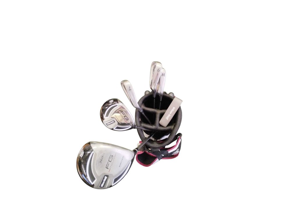 Dětský golfový set Wilson Staff GT Tour pro chlapce o věku 6-12 let v hraném stavu. Set obsahuje driver, fairwayové dřevo, železa č. 7, 9, wedge a standbag. Tyto hole jsou na grafitových shaftech. Set je určen pravorukým hráčům.