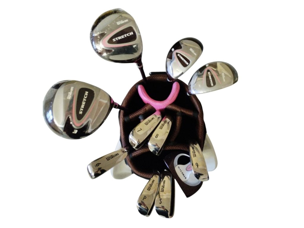 Dámský golfový set Wilson Stretch na grafitu v zánovním stavu. I když se jedná o starší set, samotné hole jsou v perfektním stavu. Tři z holí mají dokonce stále ochrannou fólii na hlavách. Set obsahuje fairwayové dřevo č.3 s loftem 15°, fairwayové dřevo č. 5 s loftem 21°, hybrid č. 4 s loftem 21°, hybrid č.5 s loftem 25°, sadu želez č.6-9, PW, SW, putter typu mallet a cartbag. Tyto hole jsou na grafitových shaftech Counter Torque s dámskou flex a gripy Wilson. Set je určen pravorukým golfovým hráčkám.